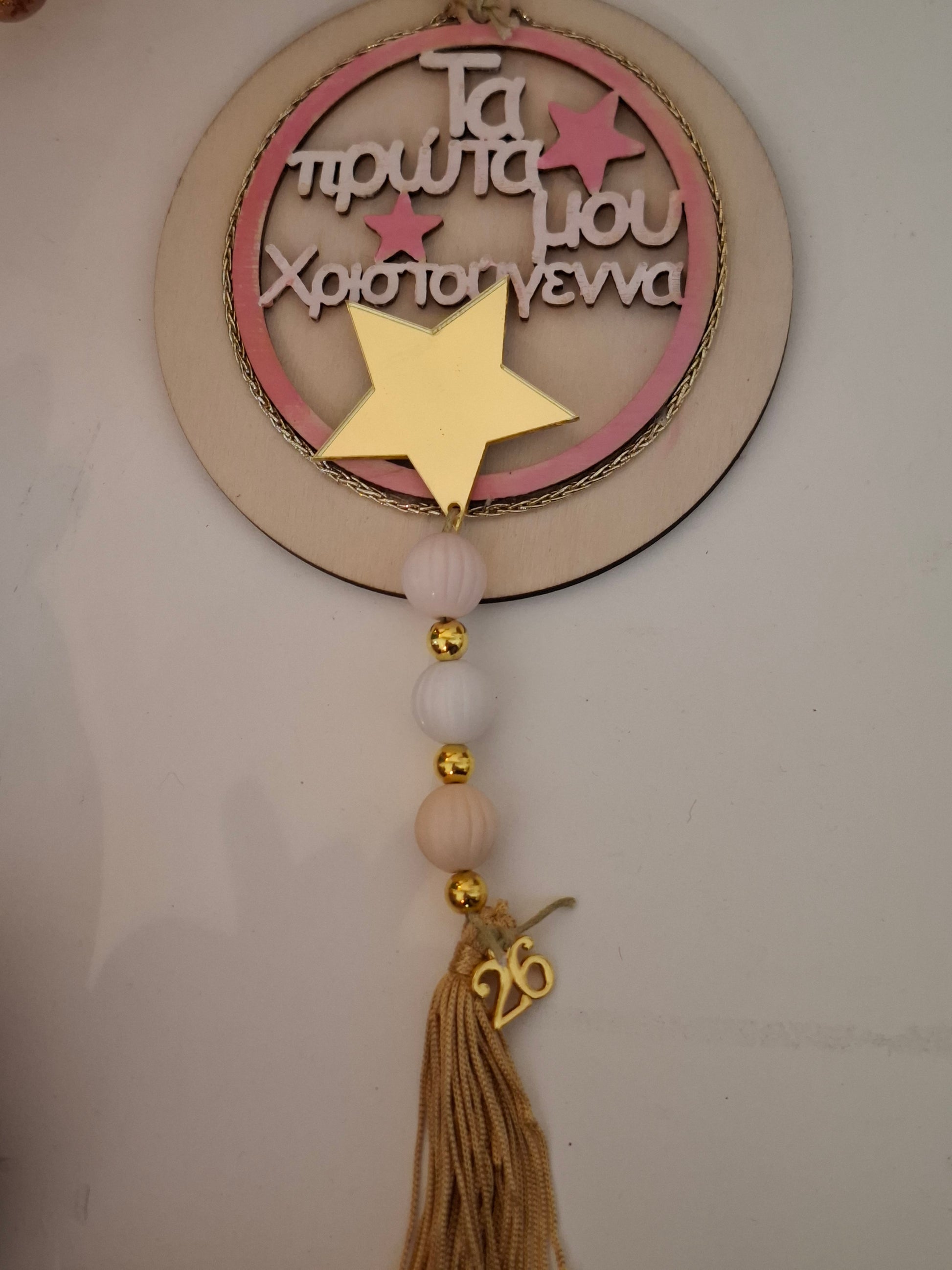 Γούρι ξύλινο "ΤΑ ΠΡΩΤΑ ΜΟΥ ΧΡΙΣΤΟΥΓΕΝΝΑ"