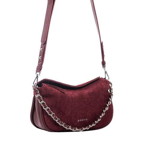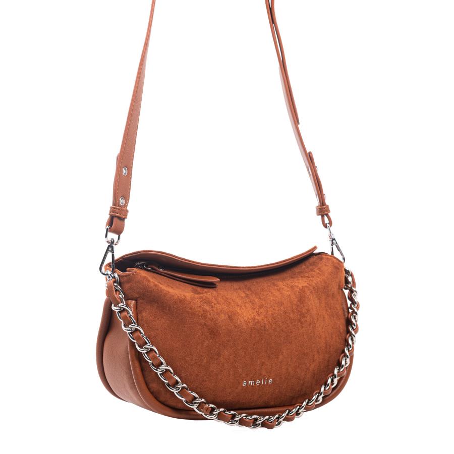 Γυναικεία τσάντα ώμου σουέτ με λουράκι χιαστί