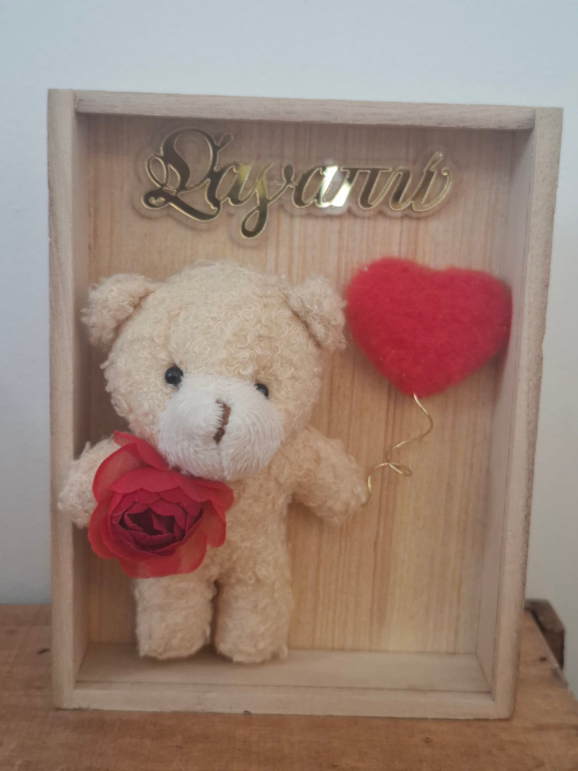 Ξύλινη σύνθεση με αρκουδάκι "Σ' αγαπώ"