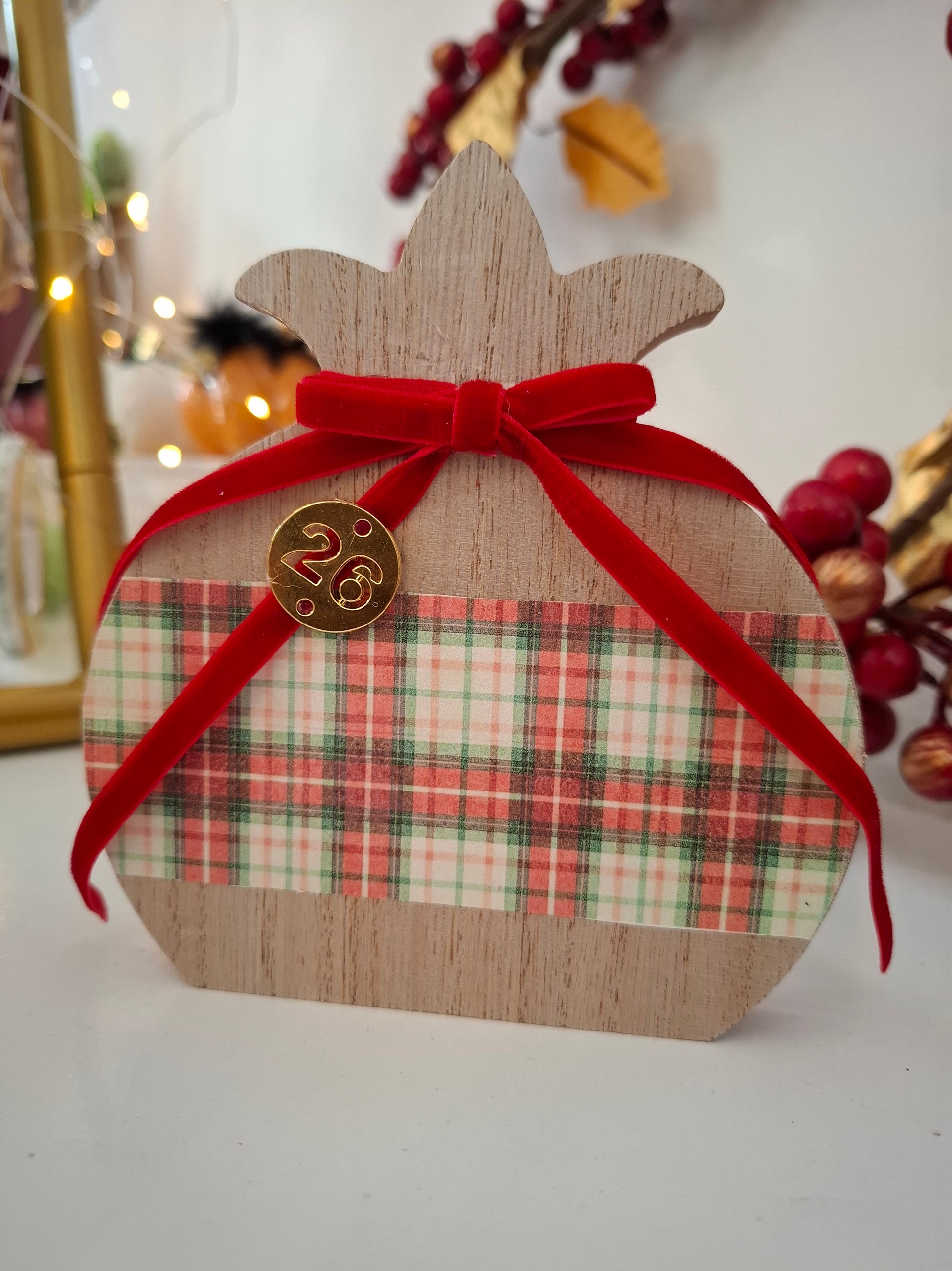 Γούρι Ξύλινο Ρόδι με καρό κόκκινο λεπτομέρεια