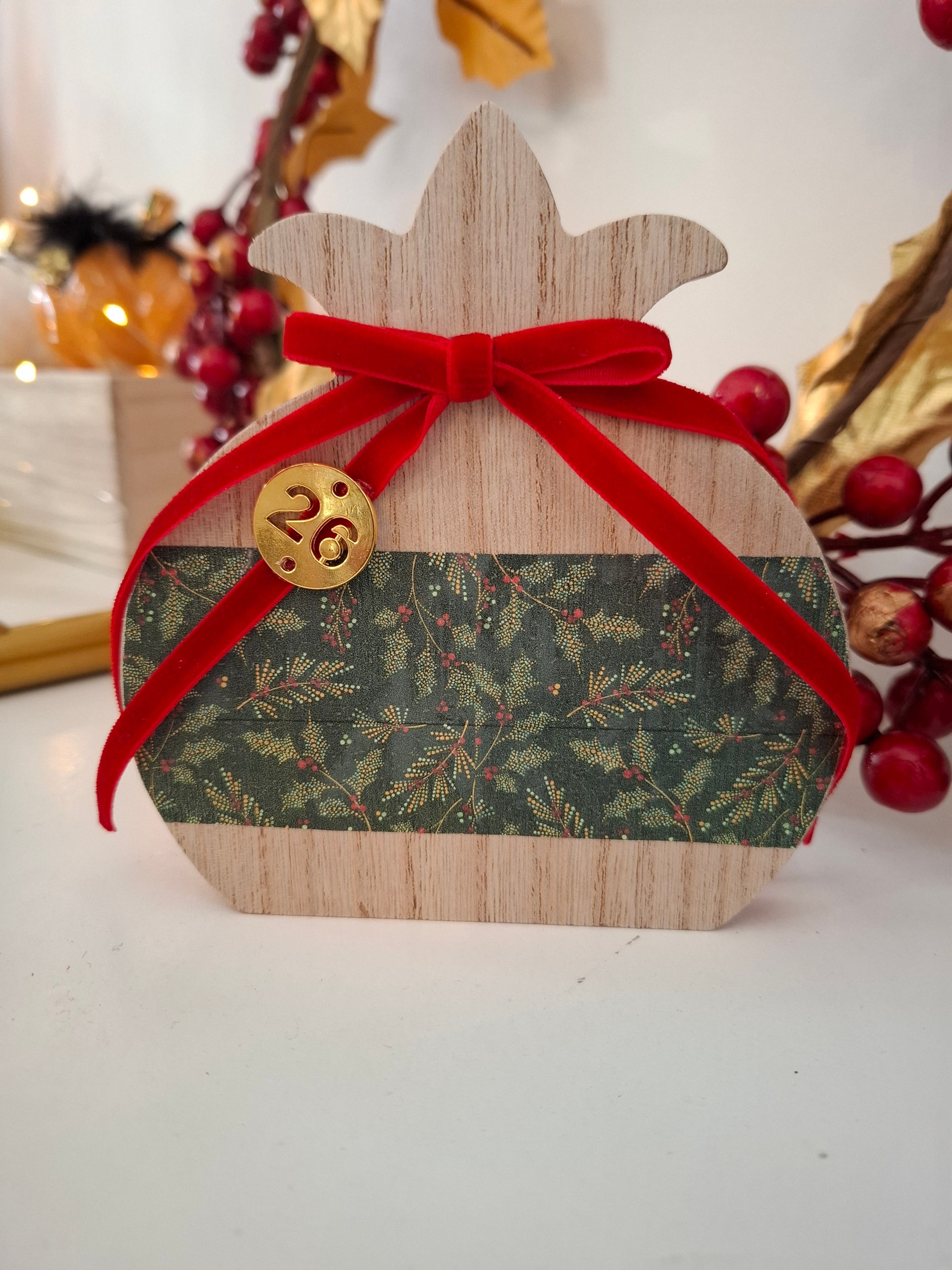 Γούρι Ξύλινο Ρόδι με πράσινες λεπτομέρειες