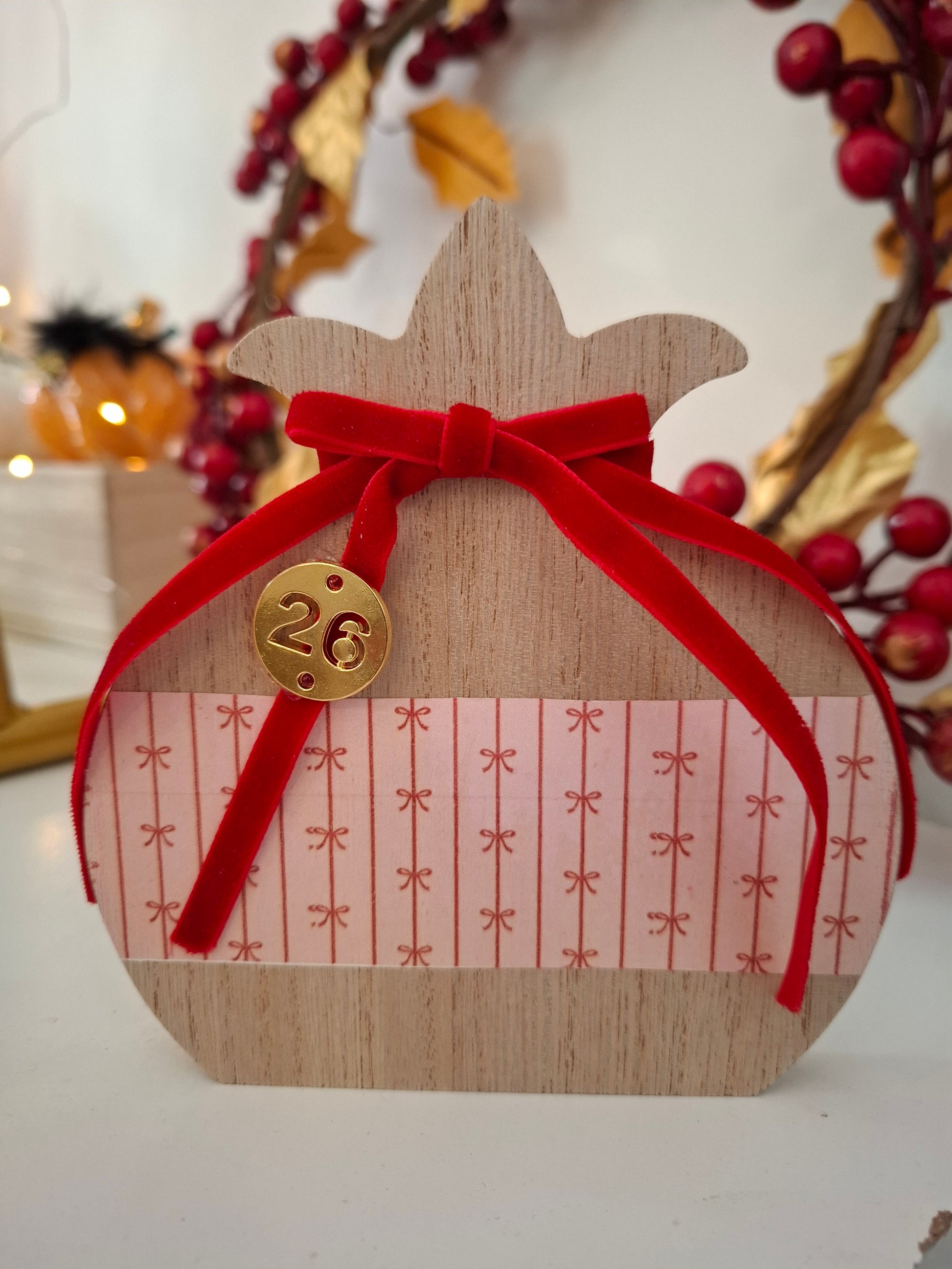 Γούρι Ξύλινο Ρόδι ροζ με φιογκάκια
