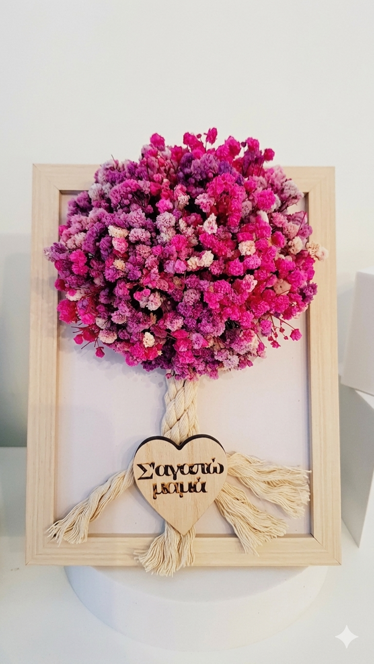 Δεντράκι με αποξηραμένη γυψοφίλη που αντέχει στον χρόνο με αφιέρωση.