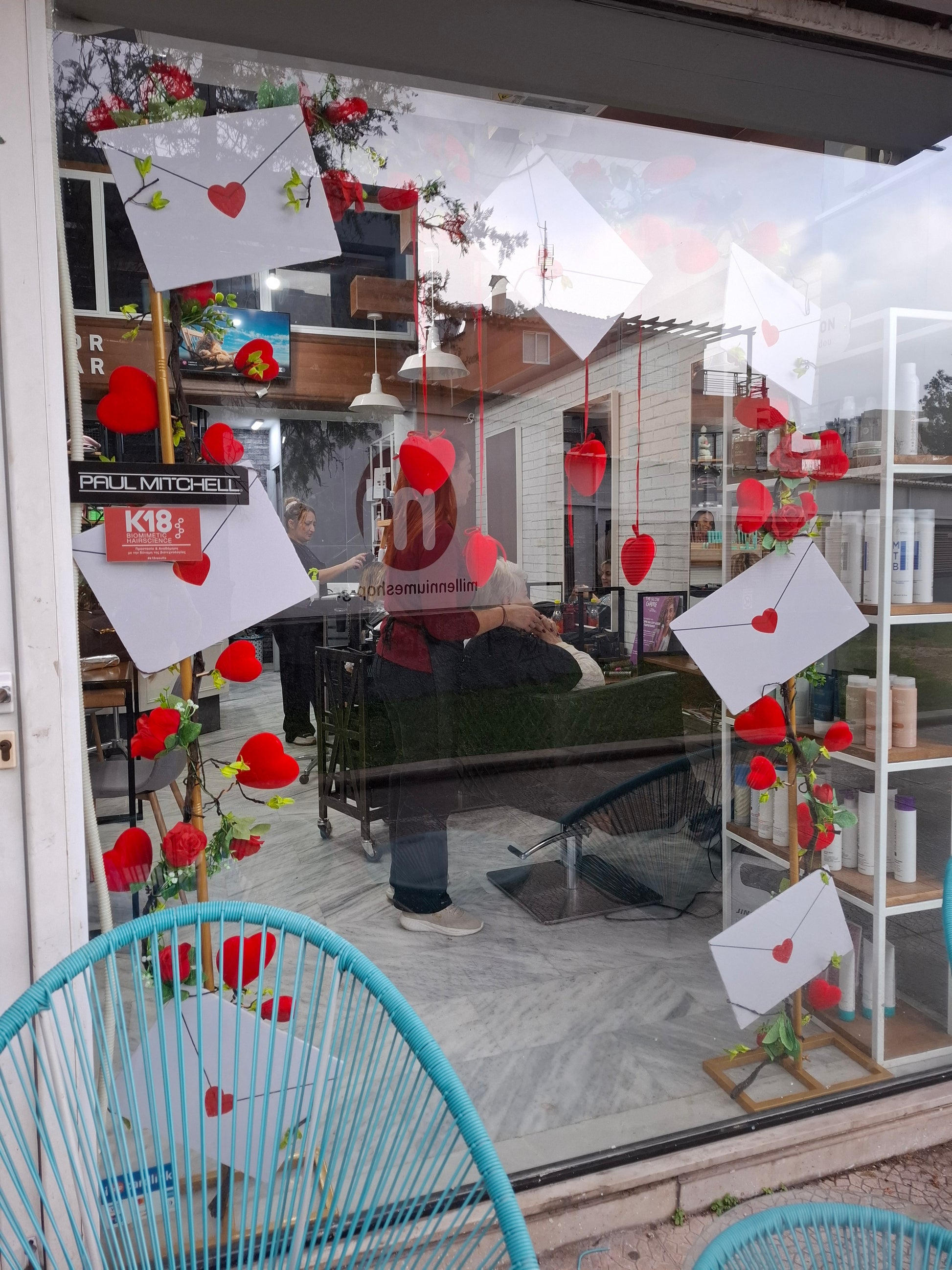Διακόσμηση βιτρίνας με θέμα το Άγιο Βαλεντίνο