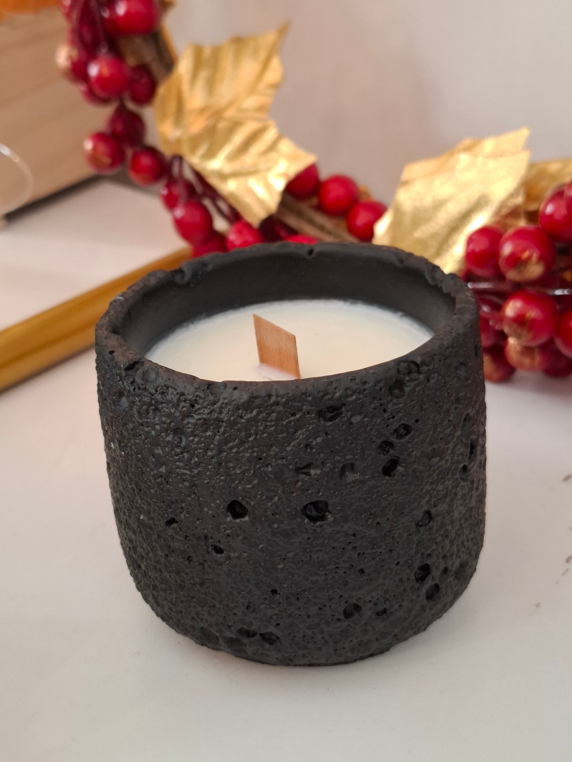 Κεράκι σόγιας σε πέτρινο δοχείο με χριστουγεννιάτικο άρωμα